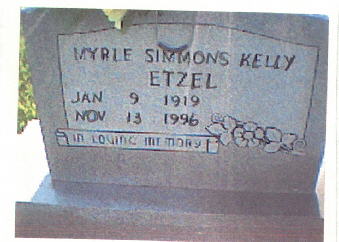 Etzel Myrle Simmons Kelly, born, Jan.9-1919, died, Nov.13-1996, wife of, John