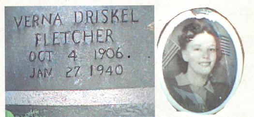 Fletcher Verna Driskel, born, Oct.4-1906, died, Jan.27-1940, wife of, George
