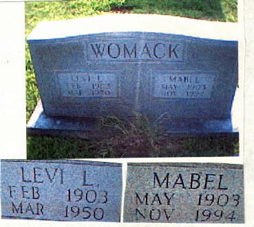 Womack Levi L., born, Feb.1-1903, died, March 21-1950, wife, Mable Mustain Picture Womack Mable Mustain, born, May -1903, died, Nov.-1994, wife