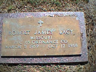 Lacy Robert James, born, March 5-1939, died, Oct.12-1968, Mo.PFC 65 ORD.CO. Picture
