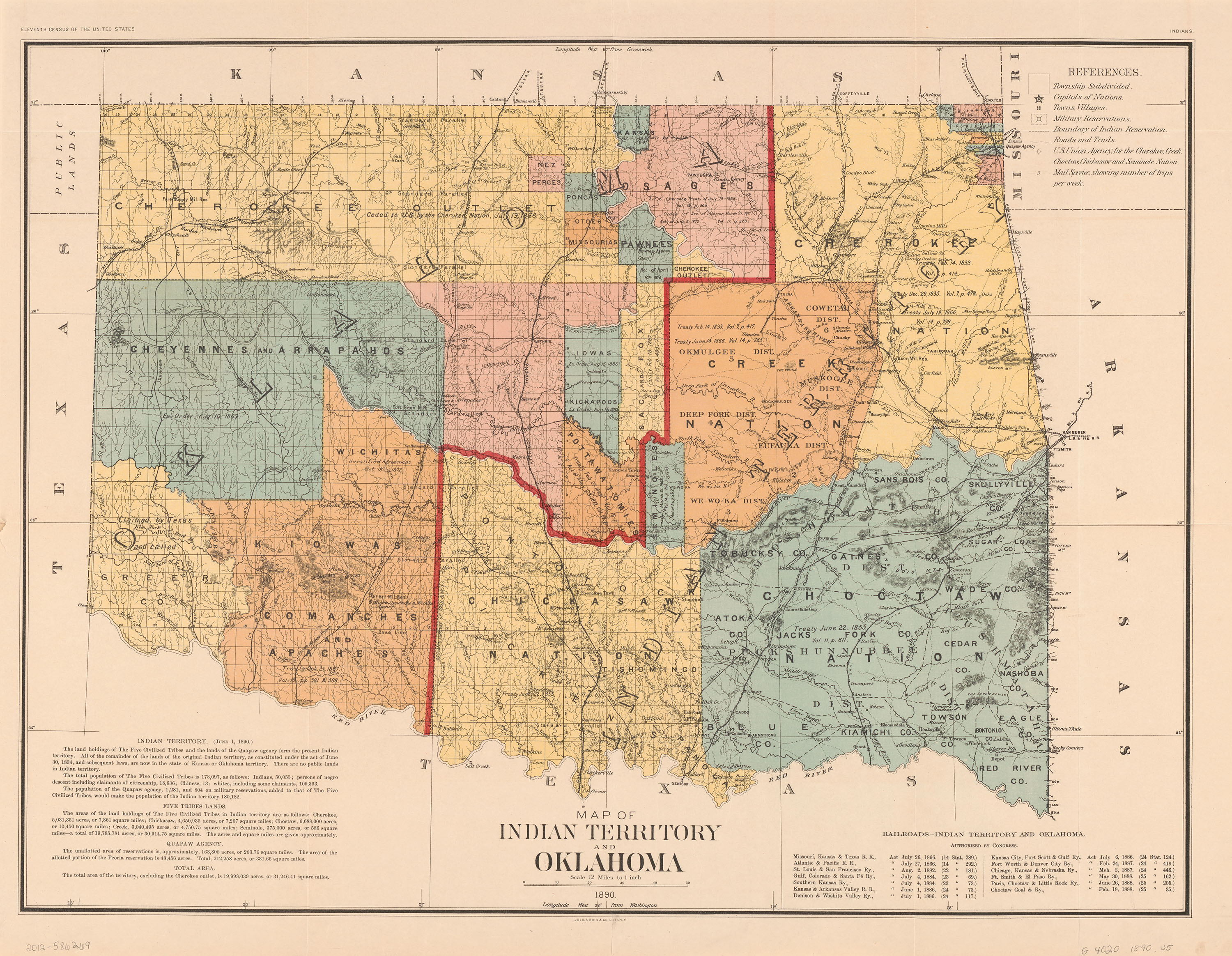 Most of the land that is now Oklahoma was acquired by the United States in 1803 as part of the Louisiana Purchase. Part of this land, which later became Eastern Oklahoma, was used to relocate nearly 50,000 eastern Indians to what was termed "Indian Territory." Indian Territory originally extended beyond present-day Oklahoma, but the size was gradually reduced over the course of the 1800's.