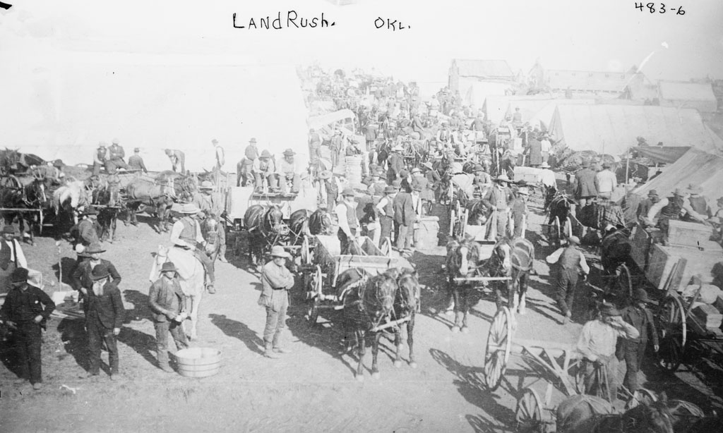 Image Source: Bain News Service, Publisher. Land rush, Okla. Oklahoma. [No Date Recorded on Caption Card] Photograph. Retrieved from the Library of Congress,