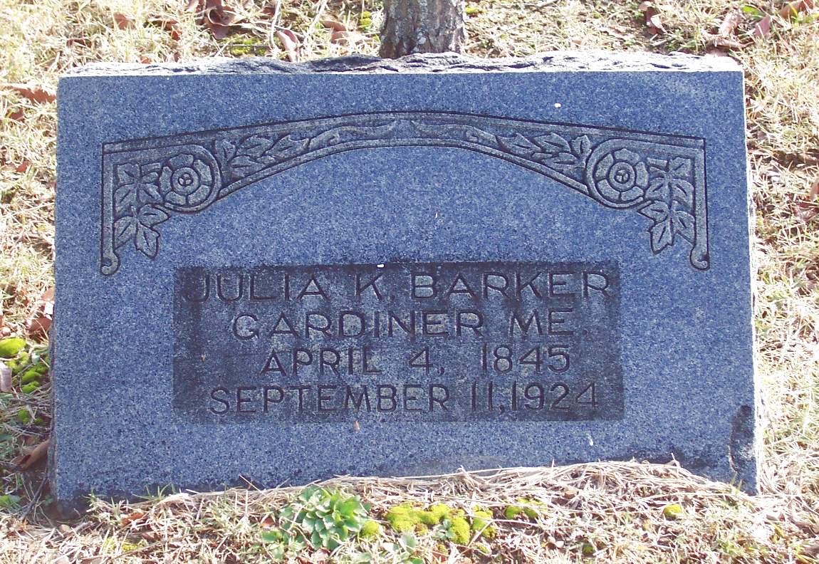 BARKER, Julia K., 4 Apr 1845 - 11 Sep 1924 (Born in Gardiner, Maine)