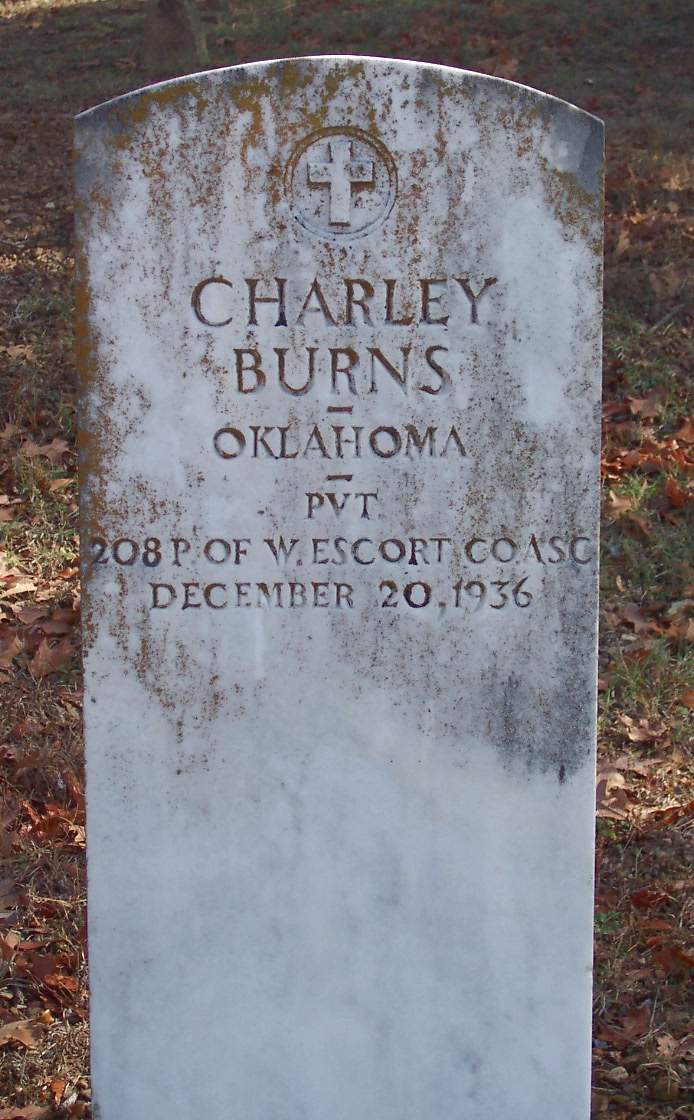 BURNS, Charley, died 20 Dec 1936, OKLA PVT 208 POF W ESCORT CO ASC