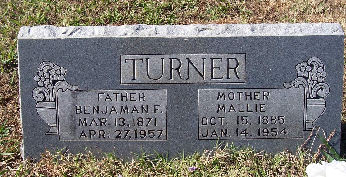 TURNER, Benjamin F., 13 Mar 1871 - 27 Apr 1957 (DS w/ Mallie)