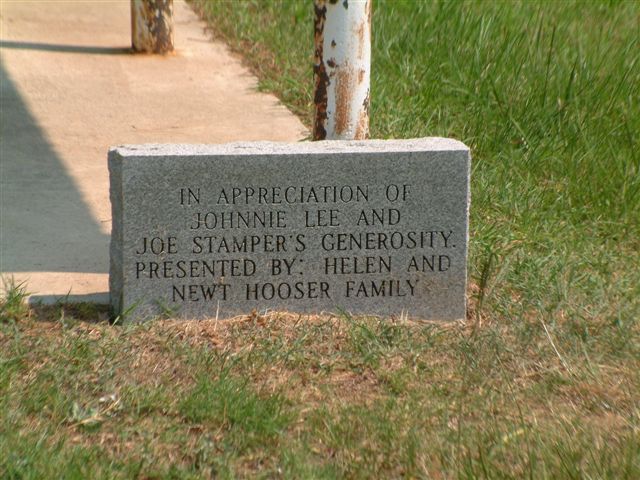 "In Appreciation of Johnnie Lee & Joe Stamper's Generosity.