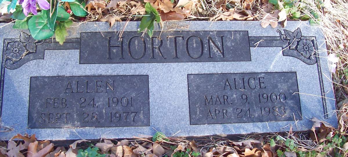HORTON, Allen, 24 Feb 1901 - 28 Sep 1977 (DS w/ Alice)