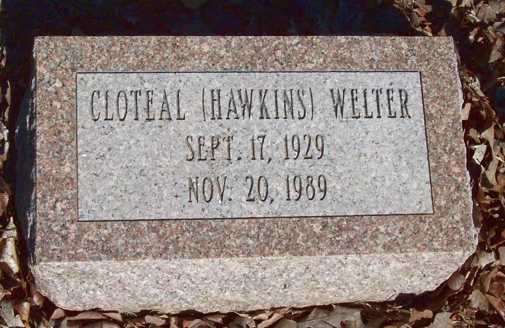 WELTER, Cloteal Hawkins, 17 Sep 1929 - 20 Nov 1989