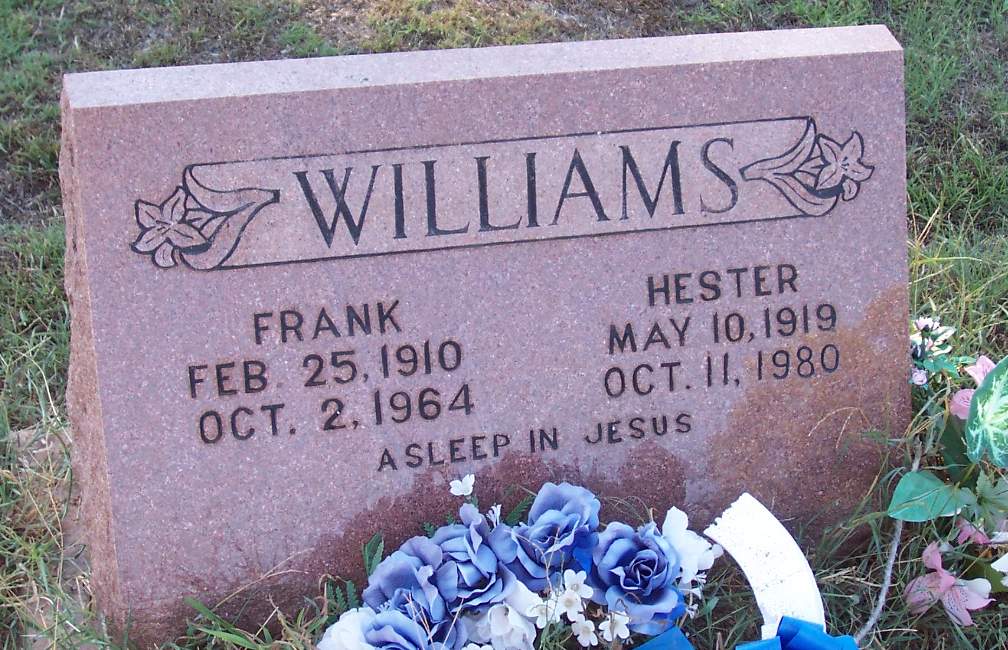 WILLIAMS, Frank, 25 Feb 1910 - 2 Oct 1964 (DS w/ Hester)