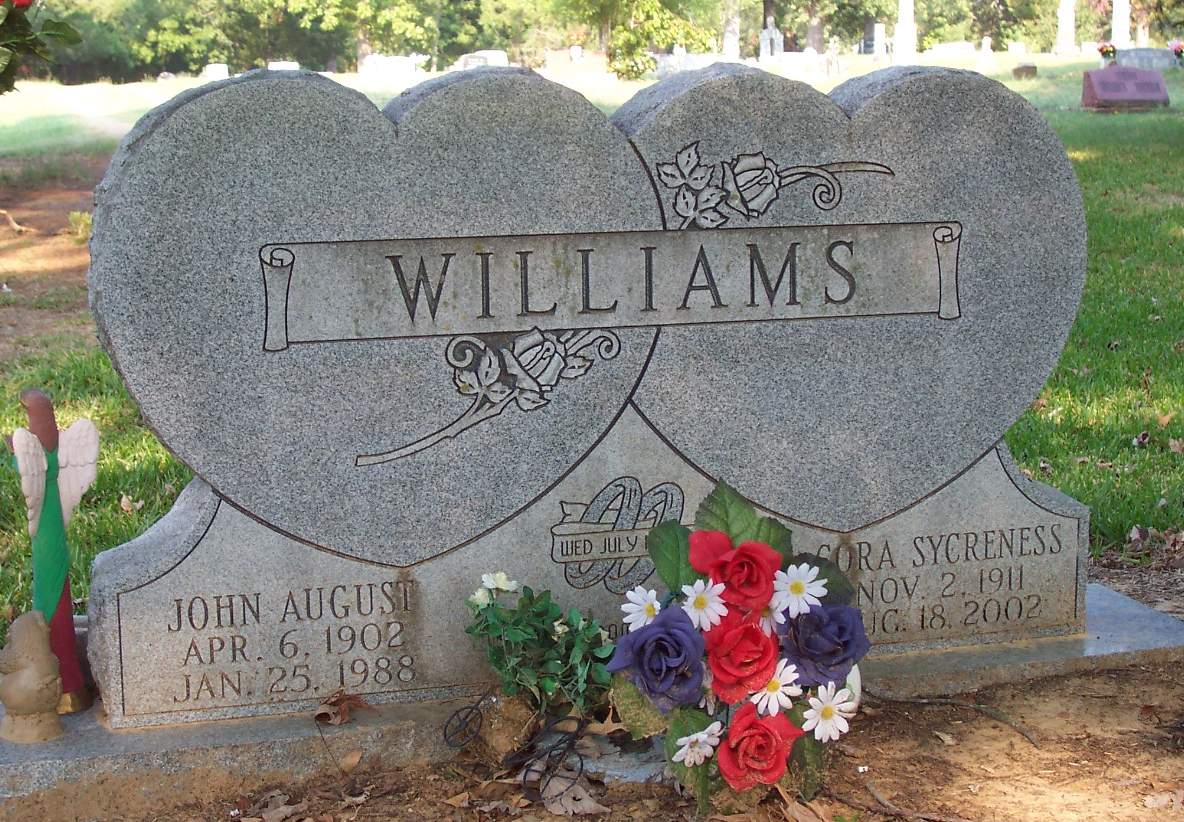 WILLIAMS, Cora SYCRENESS, 2 Nov 1911 - 18 Aug 2002 (DS w/ John August)