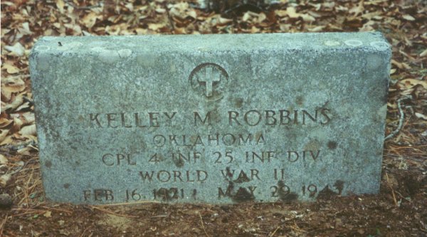 Kelley M. Robbins OKLAHOMA CPL 4 INF 25 INF DIV WORLD WAR II Feb 16, 1921 - May 29, 1943 ![]() Click on the picture to view full size photo Submitted by: Teri Cochran |