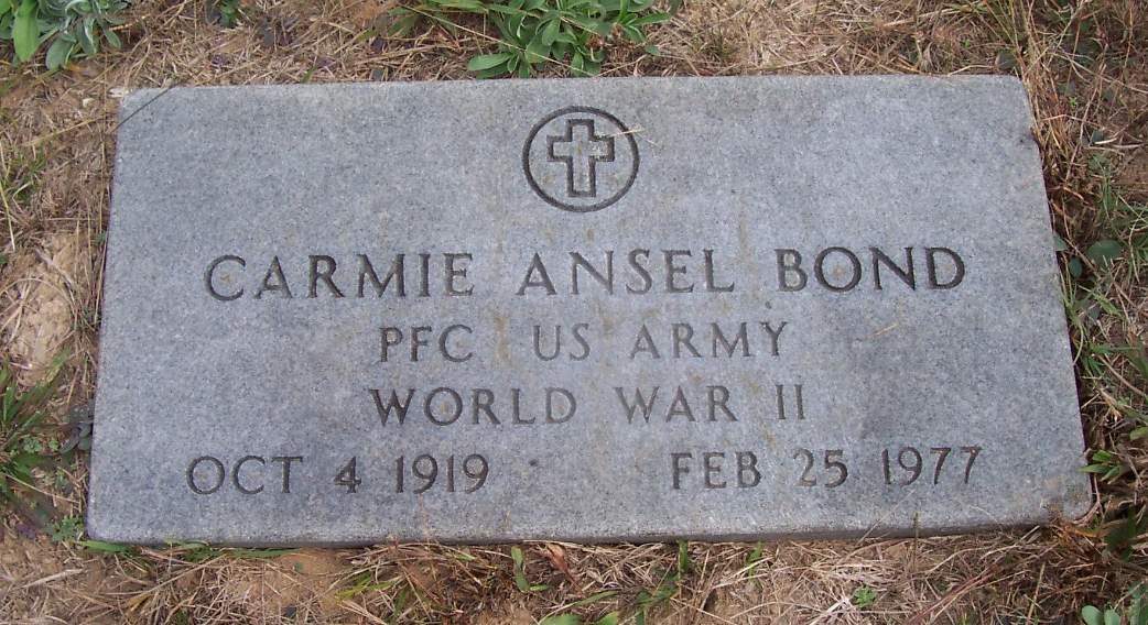 BOND, Carmie Ansel, 4 Oct 1919 - 25 Feb 1977, PFC US ARMY WWII
