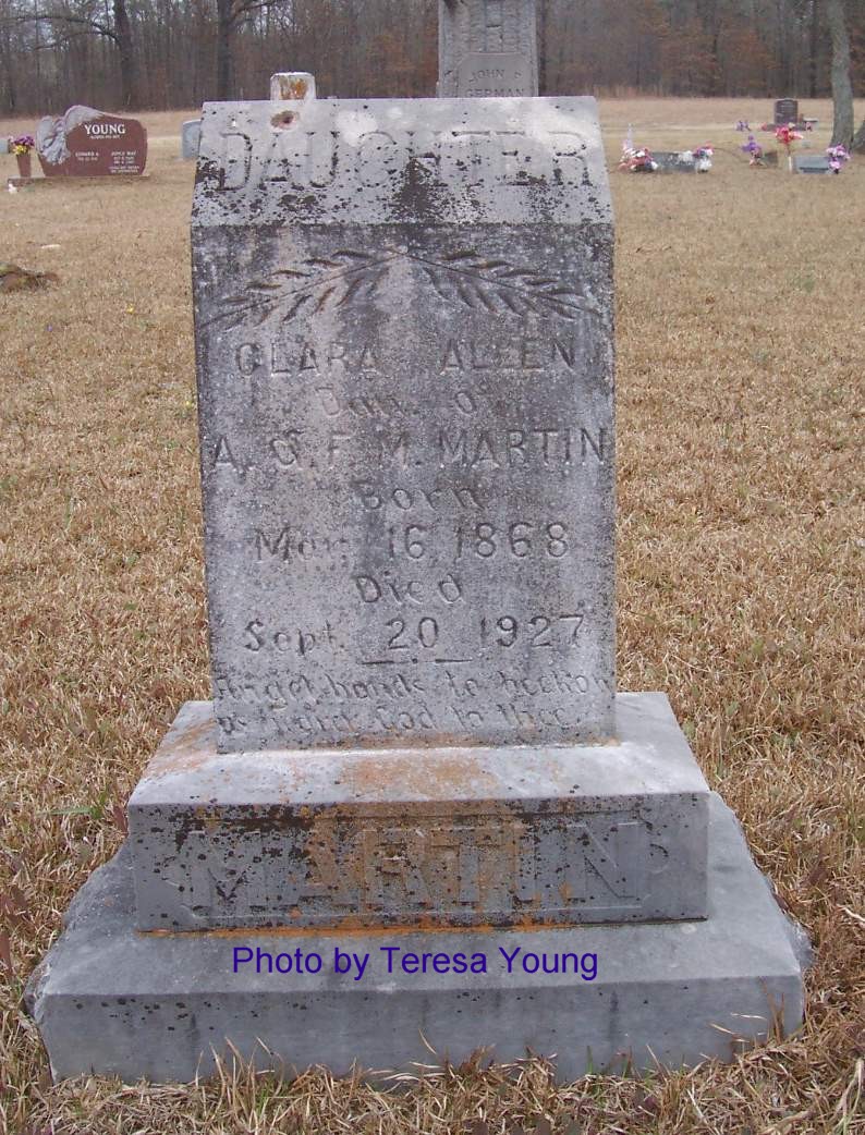 ALLEN, Clara MARTIN, 16 Mar 1868 - 20 Sep 1927 (Daughter of A. & F. M. Martin)