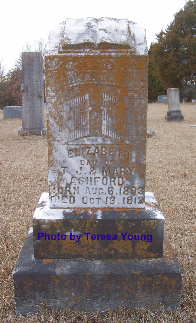 ASHFORD, Elizabeth, 6 Aug 1893 - 13 Oct 1912 (Daughter of T. J. & Mary Ashford)