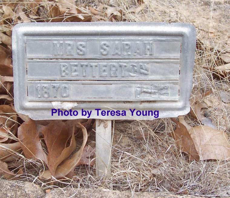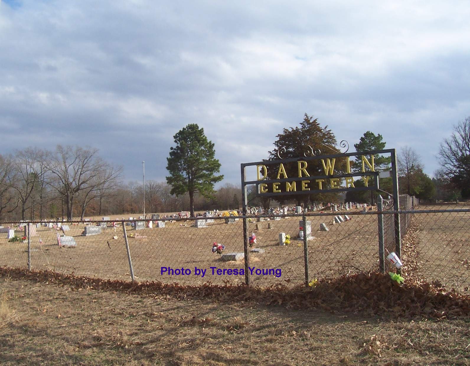 (Note from Teresa Young: If you want copy of the picture with my name off, please get in touch with me. I will be glad to send you the original photo. Write on subject: Darwin Cemetery Photo.)
