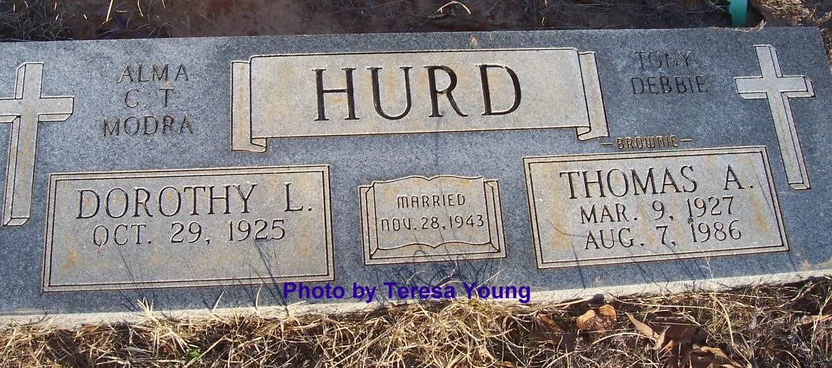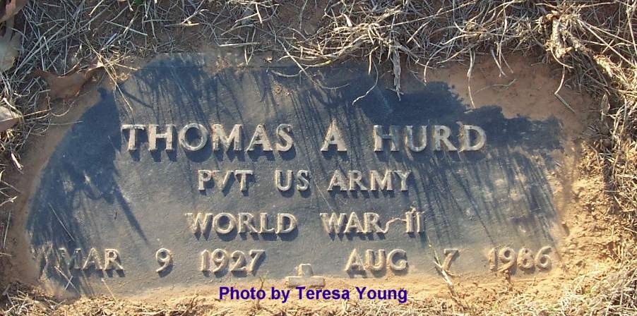 HURD, Thomas A. 'Brownie', 9 Mar 1927 - 7 Aug 1986, Parents of Alma, G. T., Modra, Tony & Debbie, PVT US ARMY WWII (DS w/ Dorothy)