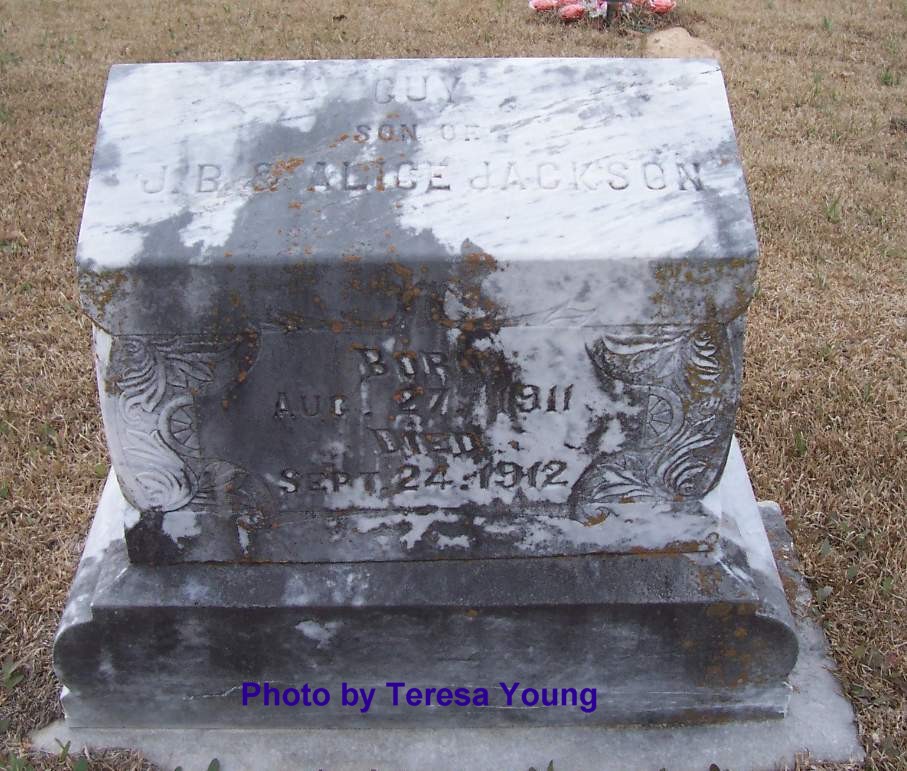 JACKSON, Guy, 27 Aug 1911 - 24 Sep 1912 (Son of J. B. & Alice Jackson)