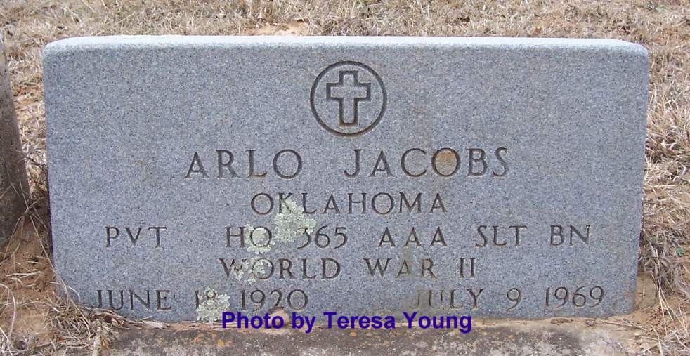 JACOBS, Arlo, 18 Jun 1920 - 9 Jul 1969, OKLA PVT HQ 365 AAA SLT BN WWII