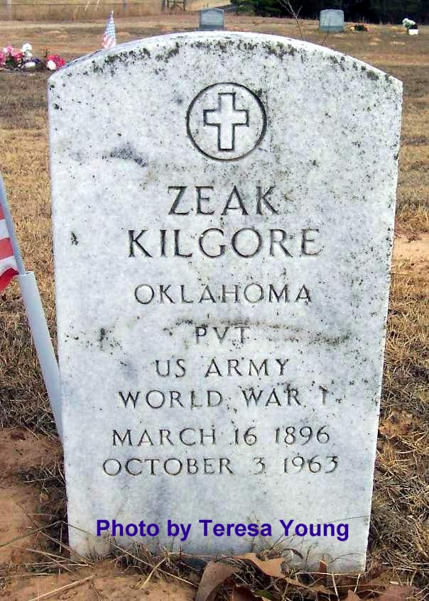 KILGORE, Zeak, 16 Mar 1896 - 3 Oct 1963, OKLA PVT US ARMY WWI
