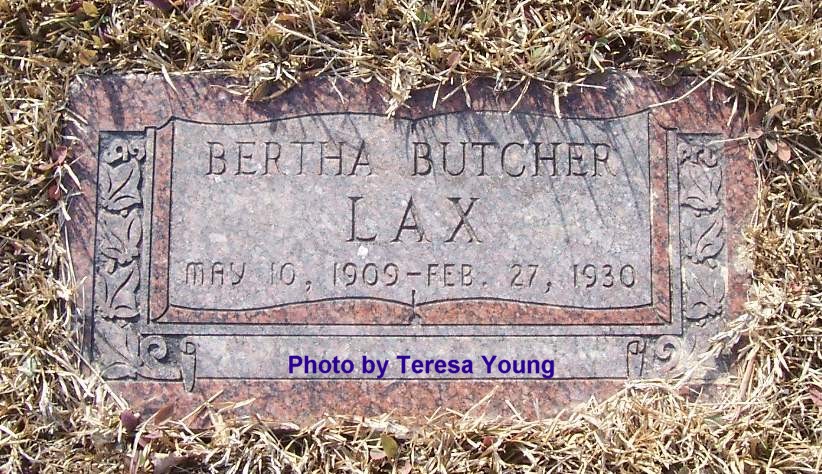 LAX, Bertha BUTCHER, 10 May 1909 - 27 Feb 1930