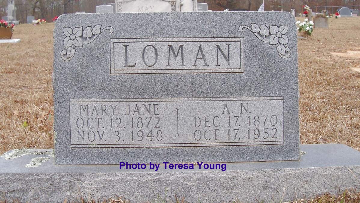 LOMAN, Mary Jane, 12 Oct 1872 - 3 Nov 1948 (DS w/ A. N.)