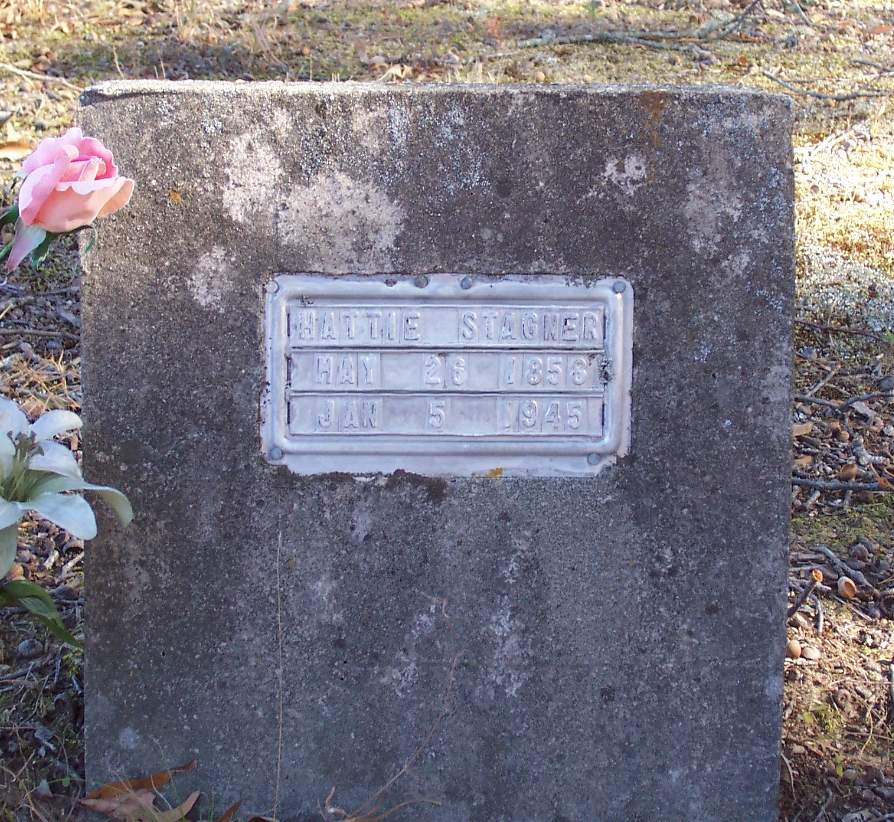 STAGNER, Hattie, 26 May 1858 - 5 Jan 1945 (FHM on concrete)