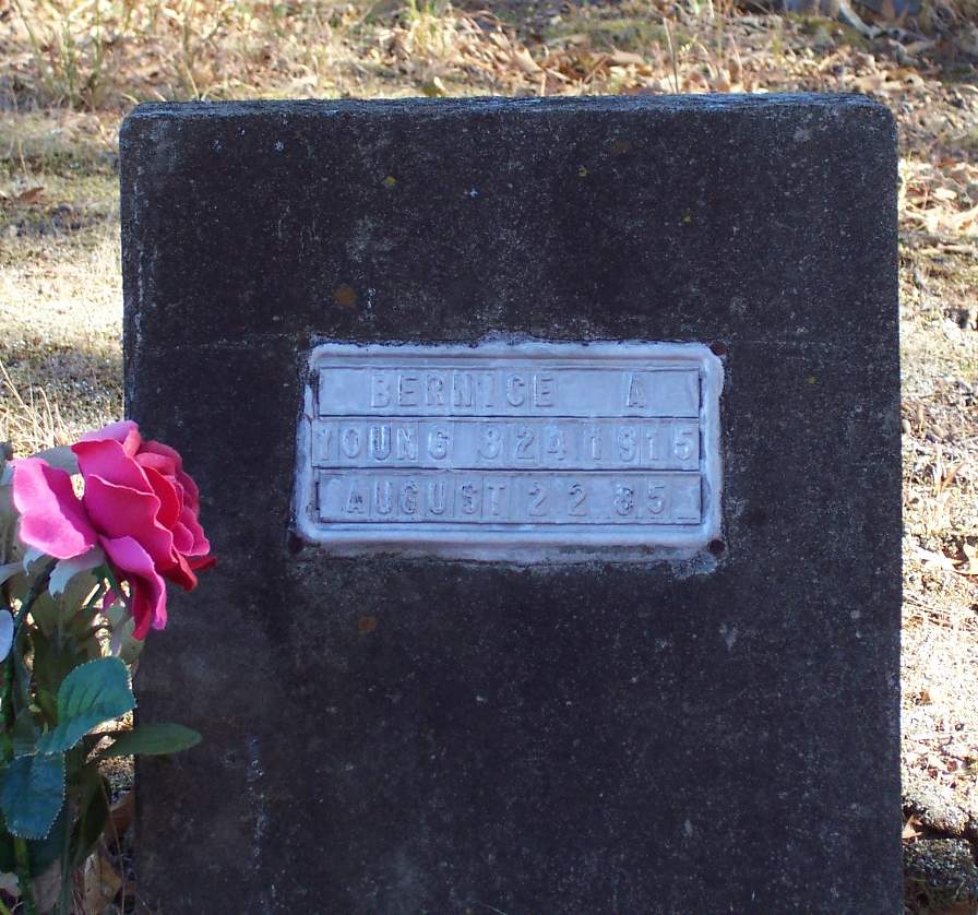 YOUNG, Bernice A., 24 Aug 1915 - 22 Aug 1985 (FHM on concrete)