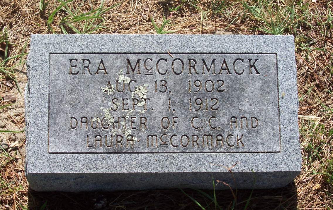 McCORMACK, Era, 13 Aug 1902 - 1 Sep 1912 (Daughter of C. C. & Laura)