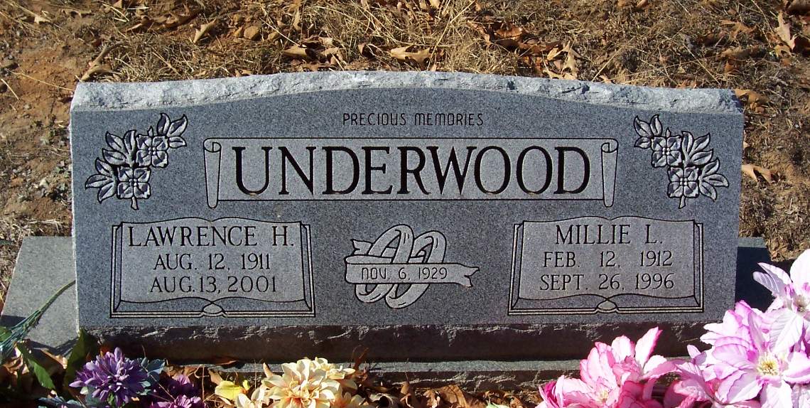 UNDERWOOD, Millie L., 12 Feb 1912 - 26 Sep 1996 (DS w/ Lawrence)