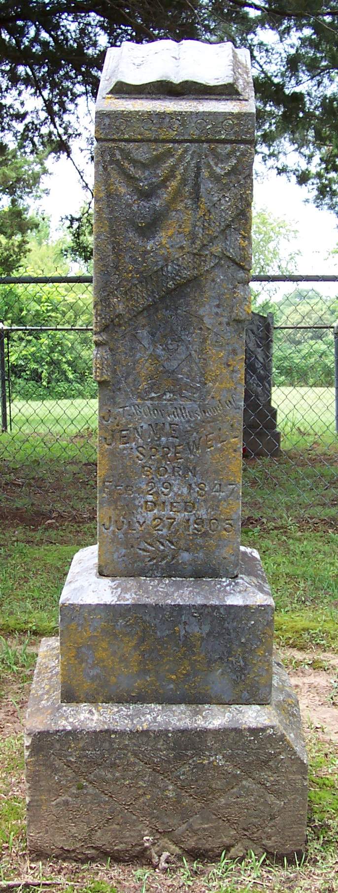 SPREWELL, Jennie, 29 Feb 1847 - 27 Jul 1905 (Husband of J. T. Sprewell)