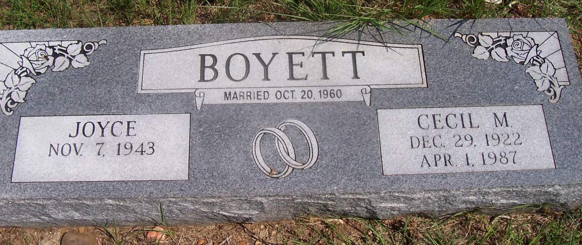 BOYETT, Cecil Morris, 29 Dec 1922 - 1 Apr 1987,