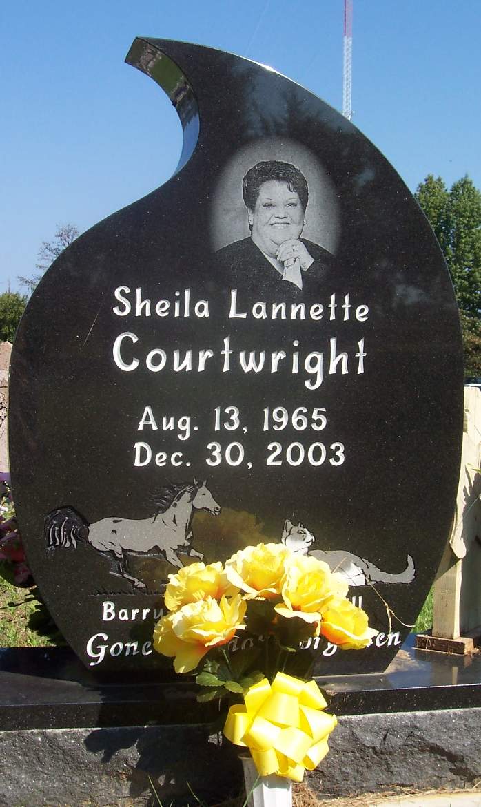 COURTWRIGHT, Sheila Lannette, 13 Aug 1965 - 30 Dec 2003 (Daughter of James & Joye Courtwright; Sister of Carroll Wayne & Brian; Aunt of Amanda, Savannah, Crystal, Kayla, Laney & Shyann [Nieces]; Aunt of Adam, Phillip, Houston, Cody & Dalton [Nephews]