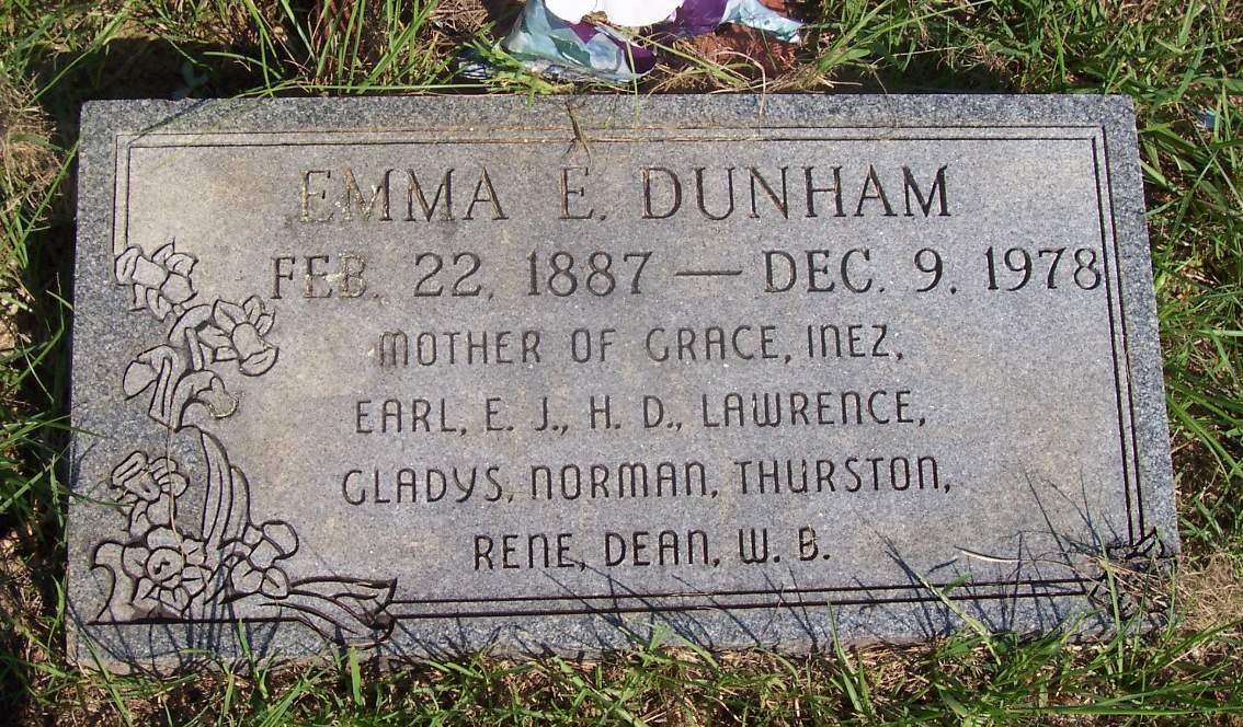 DUNHAM, Emma E., 22 Feb 1887 - 9 Dec 1978 (Mother of Grace, Inez, Earl,