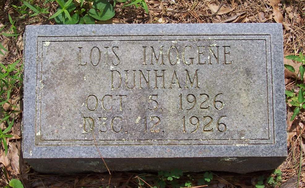 DUNHAM, Lois Imogene, 5 Oct 1926 - 12 Dec 1926