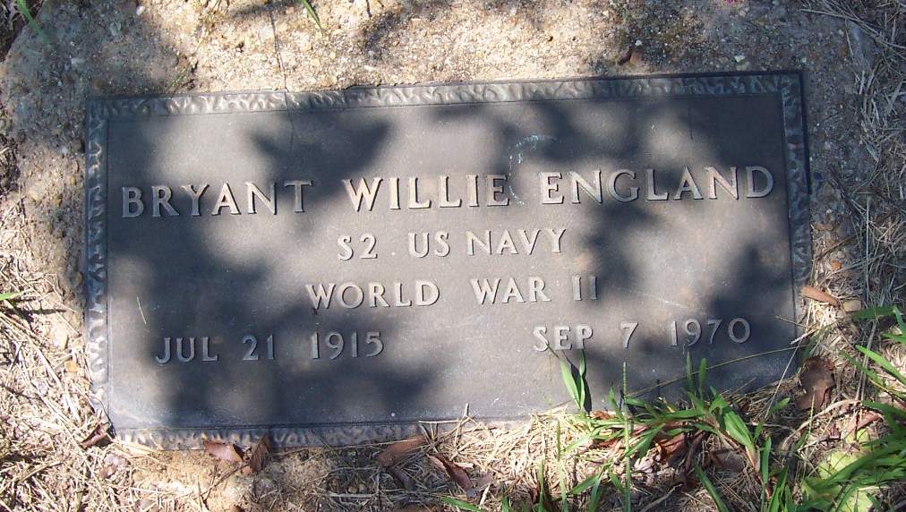 ENGLAND, Bryant Willie, 21 July 1915 - 7 Sep 1970, S2 US NAVY WWII