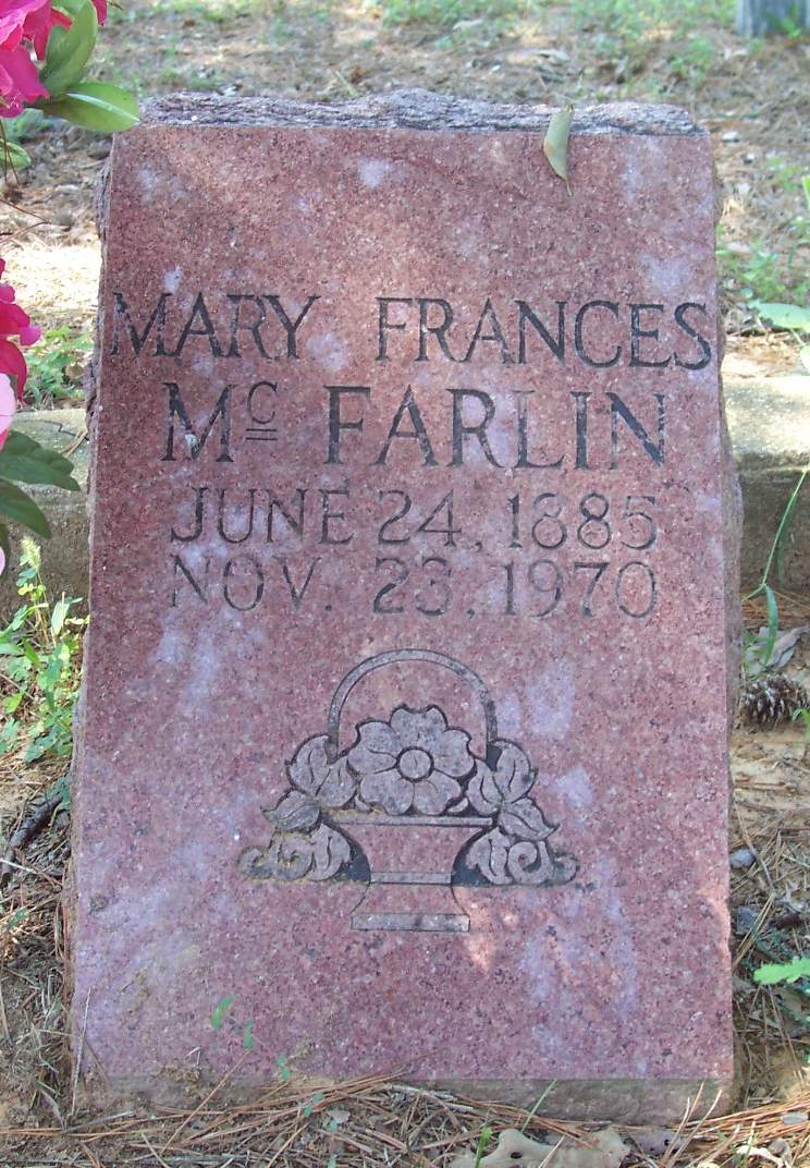 McFARLIN, Mary Frances, 24 June 1885 - 23 Nov 1970