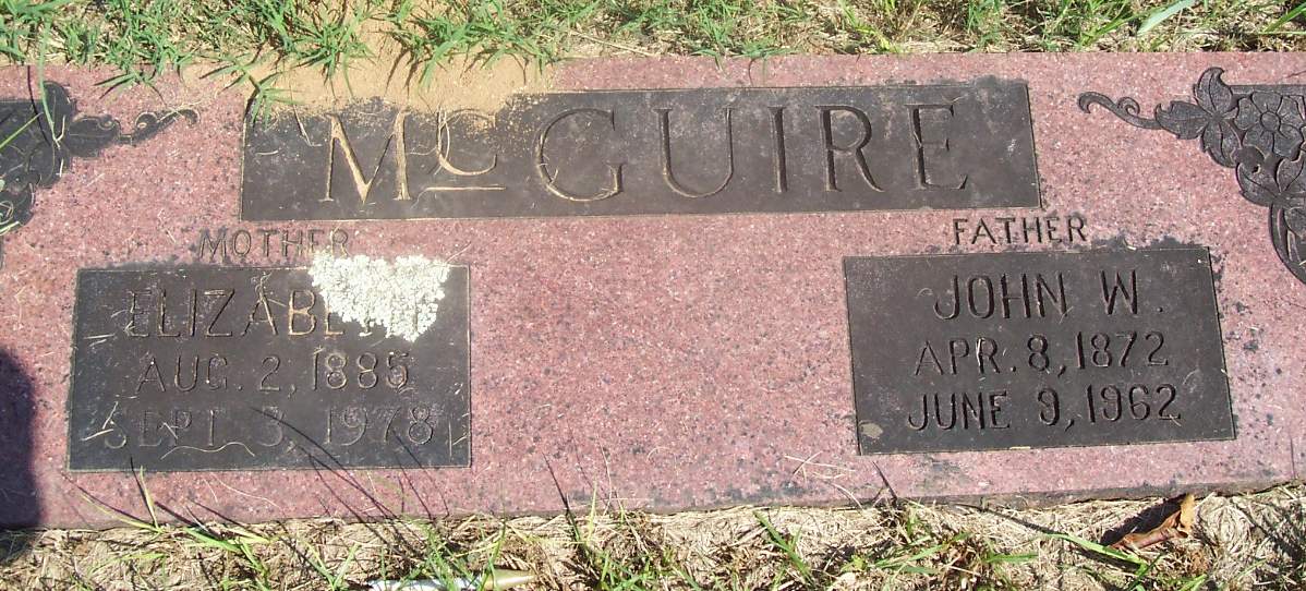 McGUIRE, John W., 8 Apr 1872 - 9 June 1962 (DS w/ Elizabeth)