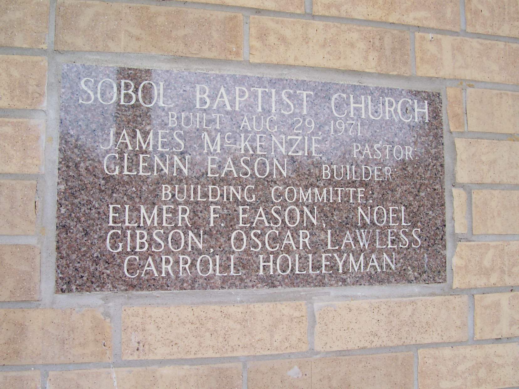Sobol Baptist Church Bell Donated By: In Loving Memory: Sobol Baptist Church |