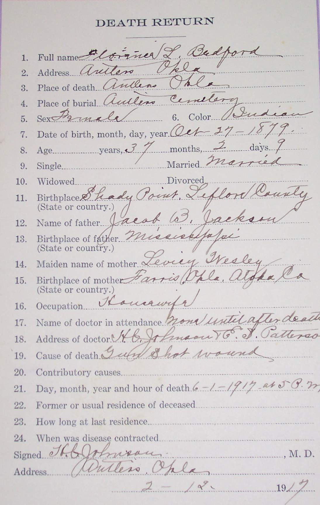 To see example of what Death Return look like, click on Florence L. Bedford's