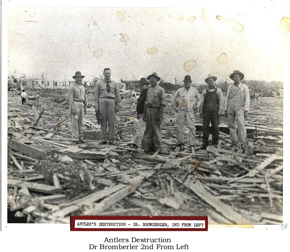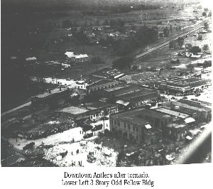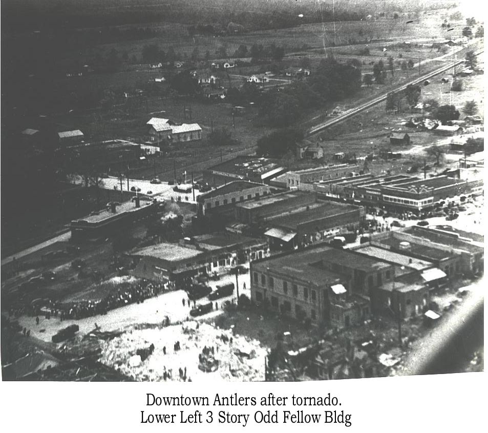 Downtown Antlers after tornado. Lower Left 3 Story Odd Fellow