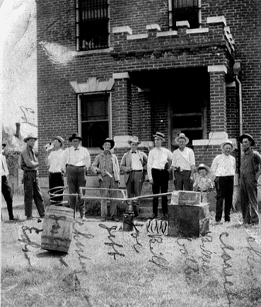 ![]() Antlers, Oklahoma Jailhouse - 1920 Tall man on the left is Ed NABORS - Chief Deputy. Others, from left of Ed: Jake ROSENTHAL - jailor; Charlie HURD - jailor; Jeff HARRIS - US Marshal; Joe NEAL - US Marshal; Bill ADAMS - US Marshal; Batler PULLEN - US Marshal; little Antlers, Oklahoma Jailhouse - 1920. Tall man on the left is Ed NABORS - Chief Deputy. Others, from left of Ed: Jake ROSENTHAL - jailor; Charlie HURD - jailor; Jeff HARRIS - US Marshal; Joe NEAL - US Marshal; Bill ADAMS - US Marshal; Batler PULLEN - US Marshal; little Billie ELLIS; Clarence ELLIS - Undersheriff; & Farmer WILSON Contributed by Barbara Chadwick of Kenai, Alaska |