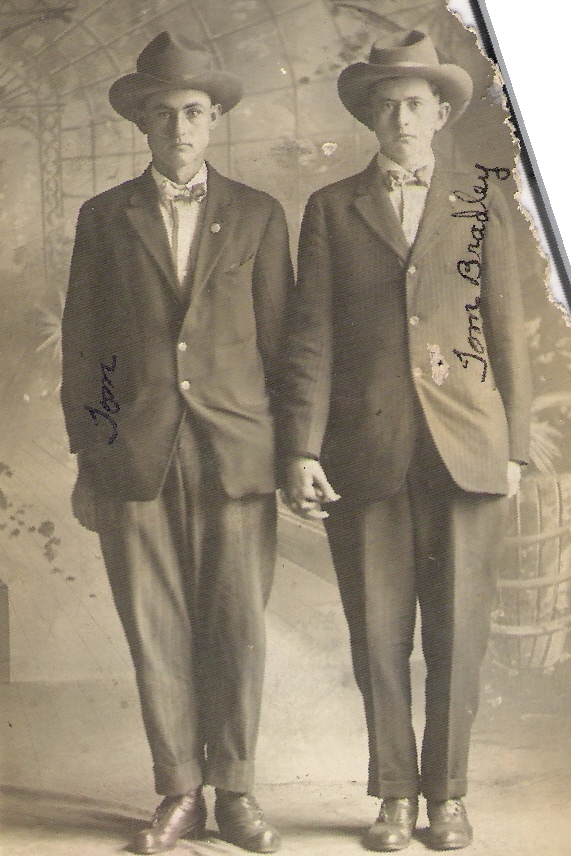 ![]() On the back of this photo is written: made in 1920 Tom Bradley both are friends submitted by Bernita Young |