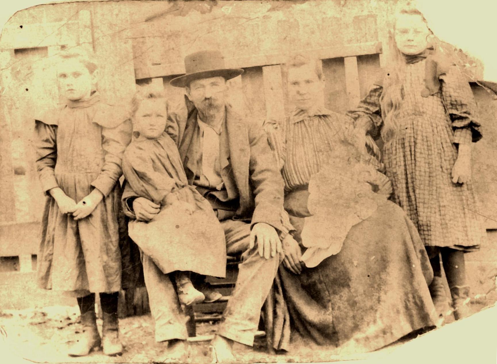 Can anyone identify these people? It is thought to be Rufus and Almeda(Pool) Tyler and some of their children. view full size image![]() submitted by Jossie VanHorn |