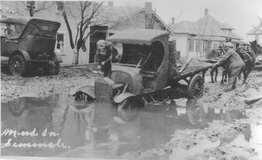 "Rock Island Crossing, Seminole. Where the mules become rambunctious."