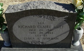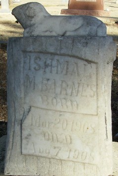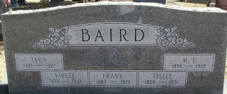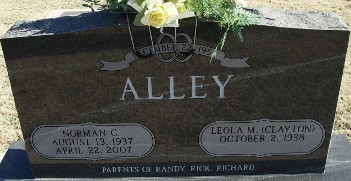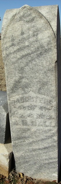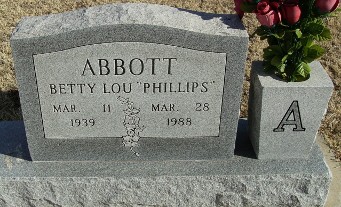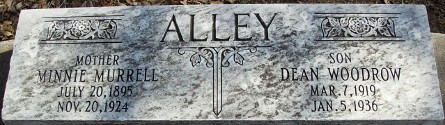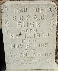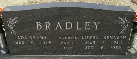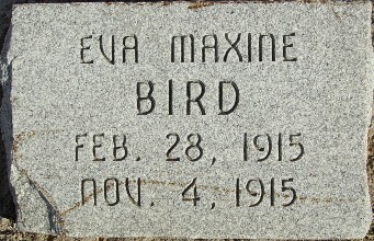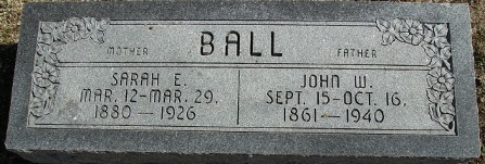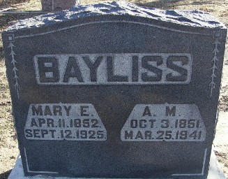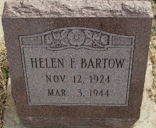 Name Birth Death Spouse/*Parent/ ABBOTT,Betty Lou Phillips 11 Mar 1938 28 Mar 1988 ----,Bessie Viola 18 Aug 1907 30 Nov 1907 (buried in the White plot) ALLEN,Dean Woodrow 7 Mar 1919 5 Jan 1936 ALLEN,Minnie Murrell 20 Jul 1895 20 Nov 1924 "Mother" ALLEY,Catherine Burnetta Kent 1881 1961 "Mother" ALLEY,Claire D. "Pete" 15 Jan 1908 Sep 1987 Jennie B. ALLEY ALLEY,Elihu 1867 1945 Valley Funeral Home Marker ALLEY,Grace Mabel Stansbury 6 Aug 1878 1 Nov 1941 ALLEY,Jennie B. "Betty" 21 May 1911 1 Mar 2004 Claire D. ALLEY ALLEY,Jim L. 16 Aug 1876 15 Oct 1954 ALLEY,John Franklin 28 Jan 1875 29 Dec 1934 "Father" ALLEY, Leola M. (Clayton) 2 Oct 1938 Norman C. ALLEY,Matthew 18 Sep 1871 17 Apr 1932 ALLEY,Norman Claire 13 Aug 1937 22 Apr 2007 Leola M. Military Plaque ALLEY,Richard Claire 24 Jul 1961 20 Jun 1965 *Norman ALLEY "Son of Leola & Norman" Note: grandson of Pete & Betty Alley - personal knowledge of canvasser Ellabell Eker. ALLEY,Richard Randolph 25 Jan 1911 30 Oct 1976 ALLISON,Dorothy B. 22 Mar 1912 Louis E. ALLISON "Mom" Married June 3, 1933 ALLISON,Louis E. 4 Mar 1909 25 Jan 1977 Dorothy B. ALLISON Married Jun 3, 1933 ALLISON, Nellie Whiting 6 Mar 1903 3 Oct 1995 ALTENREID,George Levi 1905 1967 Pauline ALTENREID ALTENREID,Pauline Marie 1927 1986 George L. ALTENREID AMES,Bernice M. 1 Dec 1901 6 Aug 1998 Frank B. AMES Married Feb 19, 1928 AMES, Blanche Lintner 19 Sep 1909 16 Feb 1999 Weber Durant AMES, Douglas C. 25 Sep 1944 Karlynn J. AMES,Frank B. 11 Jan 1903 27 Mar 1969 Bernice M. AMES Married Feb 19, 1928 AMES, Karlynn J. 30 Mar 1945 14 Sep 1986 Douglas C. AMES,Laura B. 17 Feb 1875 31 Mar 1912 Norman B. AMES,Mary 7 May 1907 5 Aug 1908 AMES,Norman B. 28 Jul 1872 10 Oct 1960 Laura B. AMES,Ruth 20 Feb 1909 20 Feb 1909 AMES,Scott F. 5 May 1965 14 Mar 1966 "Budded on Earth to Bloom in Heaven" AMES, Weber Durant 29 Aug 1904 12 Oct 1994 Blanche Lintner Mar: Jan 29, 1938 ANDERSON, Lynda D. 26 Dec 1951 22 Jan 2006 Troy L. ANDERSON, Troy L. 4 Jul 1947 ARBOGAST,Elnora 6 Oct 1885 17 Nov 1973 W. Howard ARBOGAST "Mother" Blessed Are the Pure in Heart for They Shall See God. ARBOGAST,W. Howard 3 Jan 1883 4 Jun 1956 Elnora ARBOGAST "Father" ARCHIBALD,Samuel L. 9 Jul 1857 29 Dec 1921 ASHBROOK, Alberta Mae 5 Aug 1935 3 Jul 1986 ASHER,Ronda Dawn Graham 4 Apr 1968 21 Sep 2008 Grave Photo ATKINSON,Leona 6 Sep 1876 14 Jan 1959 ATKINSON,Wintford 8 Apr 1875 13 Jan 1952 AVI, John Jake 18 Mar 1916 18 Oct 1974 AVI, Linda 8 May 1888 23 Mar 1950 AVI, Louis 1881 1956 AVI, Mary 1891 1919 BACAK,Joyce Elaine Eilers 28 Jul 1941 21 Sep 2008 BAILEY,A. D. 13 Jul 1876 14 Feb 1956 Mattie BAILY BAILEY, Christy Michele 26 Dec 1969 1 May 1998 BAILEY,Georgia C. 1 Jan 1903 21 Jul 1990 Raymond B. BAILEY Married Sept 16, 1922 BAILEY, H. G. 22 Jun 1880 8 Mar 1912 *H. D. BAILEY Son of H. D. & M. M. Bailey BAILEY,Mattie 6 Aug 1876 26 Dec 1951 A. D. BAILY BAILEY,Raymond B. "Pete" 21 Sep 1902 10 Oct 1975 Georgia C. BAILEY Married Sept 16, 1922 BAILEY,Son Infant 6 Nov 1910 6 Nov 1910 *A. D. BAILY Son of Mr. and Mrs. A. D. Baily BAIRD,Andrew Martin 29 Jan 1890 5 Oct 1943 BAIRD,Carrie 5 Aug 1906 3 Sep 1979 James BAIRD "Mother" Married June 27, 1929 parents of Alfred McClellan BAIRD,Col. G. M. 24 Nov 1868 5 Sep 1954 BAIRD,Frank 1883 1973 "Husband" BAIRD,Fred Millard 1881 1963 "Dad" BAIRD,Grachel Barbara 1889 1975 "Mom" BAIRD,Harry Burris 7 Mar 1864 28 Dec 1953 BAIRD,Hatie M. 5 Apr 1870 13 Jan 1917 BAIRD,Joseph William 20 Feb 1893 11 Nov 1916 BAIRD,James 16 Sep 1905 7 Apr 1987 Carrie BAIRD Married June 27, 1929 parents of Alfred McClellan BAIRD,Leon 1925 1927 "Son" BAIRD,Linnie M. 19 Mar 1882 1 Jan 1972 BAIRD,M. C. 1856 1928 "Father" BAIRD,Rachael Boyle 22 Apr 1864 17 Apr 1957 BAIRD,Tillie 1859 1931 "Mother" BAIRD,Vesta Evelens Young 21 Jul 1890 20 Feb 1982 BAIRD,Violet 1895 1961 "Wife" BAKER,Hattie A. 1864 1940 BAKER,Orange S. 1849 1941 BALK, Bernard S. 18 May 1916 27 May 2000 Juanita L. Mar: 10Jun1939 BALK, Juanita L. 22 May 1920 27 Apr 2005 Bernard S. BALL, Alice Mae 22 May 1940 15 Nov 1994 Leonard Mar: 18 Sep 1960 BALL,Bobby Leon 14 Jul 1952 Only date on stone July 14, 1952 BALL, Daughters o Mr. & Mrs A. M. BALL BALL, Elmer 13 Jan 1913 23 Aug 2000 BALL,George C. 27 Sep 1902 *A. M. RUBLE "Son of A. M. & S. E. Ruble" Age 7 mos 11 days BALL,Halley Floyd 30 May 1886 9 Apr 1968 BALL,John W. "Father" 15 Sep 1861 16 Oct 1940 Sarah E. BALL,Lossie 1906 1980 BALL,Opal 1916 1971 BALL,Sarah E. 15 Sep 1902 A. M. RUBLE "Wife of A. M. Ruble" age at death 30 yrs. 5 mos. 10 days BALL,Sarah E."Mother" 12 Mar 1880 29 Mar 1926 John W. BALLIAN, Kat 1829 1904 BANGSTON,Alma 17 Jan 1868 1 Nov 1945 "Mother" BANGSTON,Frank A. 12 Feb 1889 15 Dec 1964 "Kansas Pvt Base Hospital 101 World War I" BANGSTON,John W. 4 Apr 1904 30 Jan 1982 On same stone as Henry & Anna Constant BANGSTON,Leona P. 17 Nov 1914 On same stone as Henry & Anna Constant BANGSTON,Oscar 31 Mar 1868 6 Jun 1955 "Father" BARANSY FAMILY STONE BARANSY, Doris Williams 1911 2002 BARANSY,Homer John 1901 1968 BARDWELL,Bernita Jo Rutledge 1947 1982 "Mother" Wife & Friend BARNES FAMILY STONE BARNES, Ishmal M. 20 May 1908 7 Aug 1908 BARNES,J. F. 17 Aug 1869 24 Mar 1927 BARNES,M. B. 3 Aug 1911 5 Oct 1968 BARNES,M. M. 21 Dec 1873 31 Oct 1948 BARNES, Martha Ann Stanton 1929 1929 BARNES,Rosie 25 Jul 1848 4 Oct 1931 "Aunt Rosie" BARNETT,George A. 29 Jun 1915 29 May 1980 War Mraker: T-Stg. U. S. Army World War II BARNETT,Neva A. 19 Mar 1907 BARNETT,Sidney Cecil 1913 1980 War Marker: Pvt. U. S. Army World War II BARNETT,Stella Smith 19 Jan 1881 27 Dec 1951 "Mother" "She is not dead but sleepeth" grave next to Lee Roy Smith BARNETT,Virginia V.(Hawk) 14 Feb 1917 6 Dec 1995 BARTOW,Archie 3 Jan 1873 6 Oct 1949 BARTOW,Emma 14 Feb 1887 27 Dec 1975 BARTOW,Helen F. 12 Nov 1924 3 Mar 1944 This stone is almost hidden under a large cedar tree BARTOW, John Arnold 2 Jul 1926 BARTOW, Wynona M. 17 Aug 1928 BAYLISS,A. M. 3 Oct 1851 25 Mar 1941 BAYLISS,Mary E. 11 Apr 1852 12 Sep 1925 BAYLISS,Mary E. ALLEY 1856 1950 BAYLISS,Millard Mario
