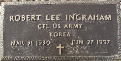 INGRAHAM,Robert Lee "Bob" 31 Mar 1930 27 Jun 1997 Military Plaque