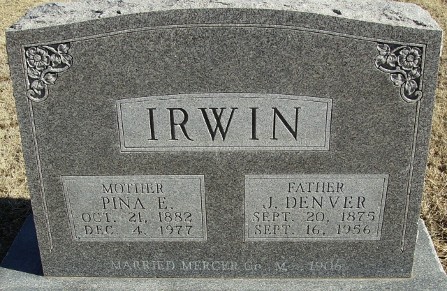 IRWIN,J. Denver "Father" 20 Sep 1875 16 Sep 1956 Pina E. IRWIN