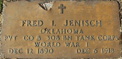 JENISCH, Fred L. 12 Dec 1890 6 Dec 1918 Military Plaque