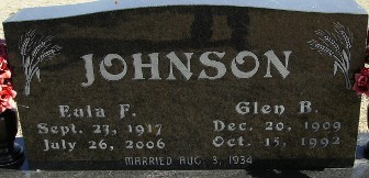 JOHNSON, Glen B. 20 Dec 1909 15 Oct 1992 Eula F. Wed 3Aug1934