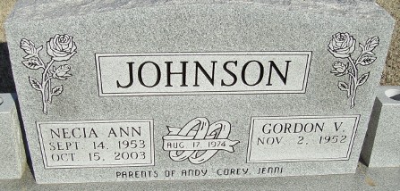 JOHNSON, Necia Ann 14 Sep 1953 15 Oct 2003 Gordon V. Wed 17Aug1974